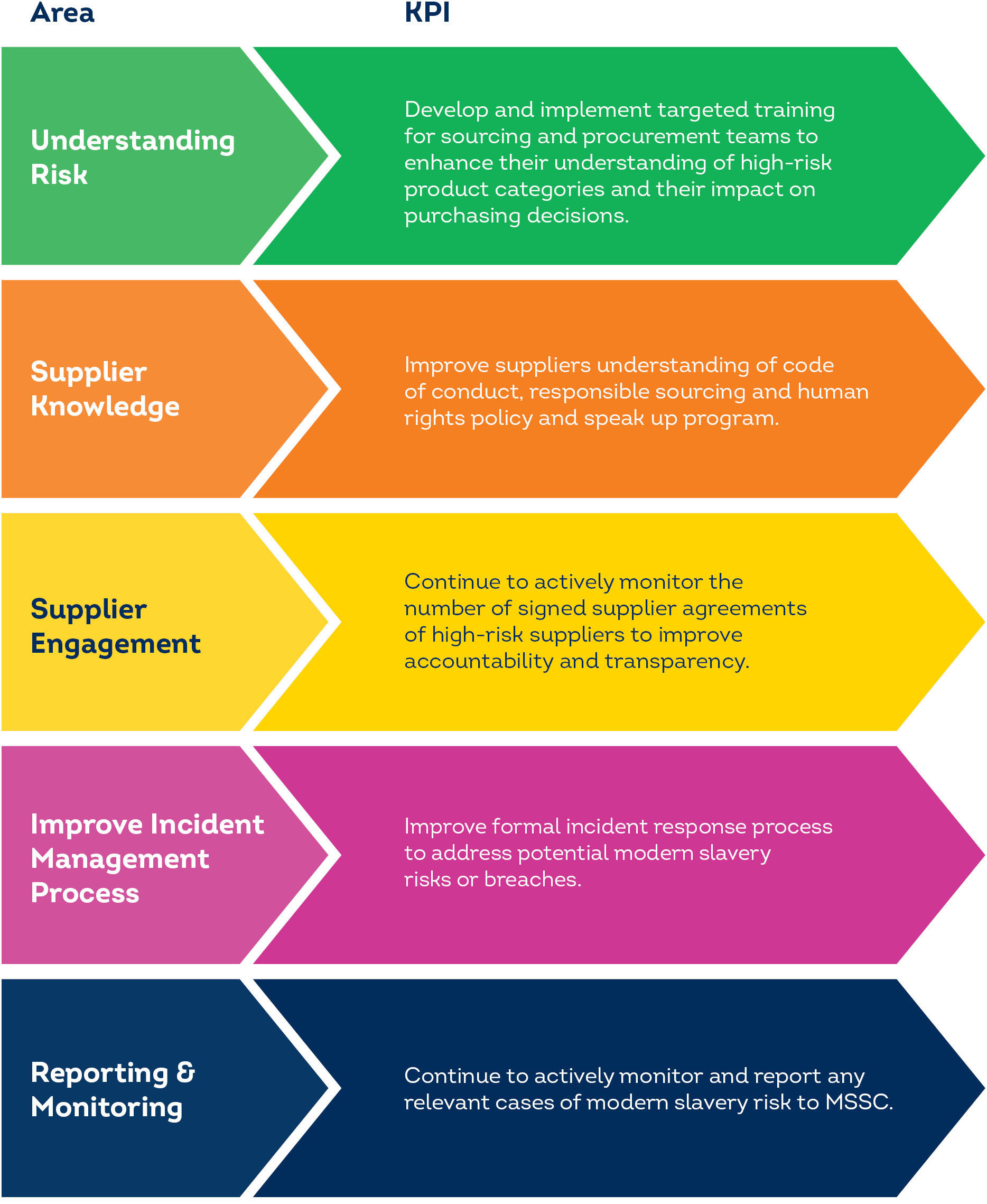 Objective: To strengthen the identification, escalation and management of potential modern slavery risks by improving transparency and visibility of labour practices across higher risk areas of the supply chain.